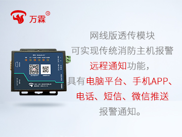 • 产品描述:无线透传模块可以和各大品牌的消防主机进行连接,消防主机的数据可以通过模块与互联网进行连接,发生报警后,工作人员可以时间在Web管理平台或者手机APP终端上获取到信息。